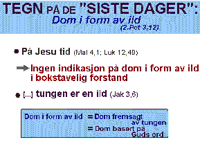 Jak 3,6 sier at tungen er en ild. Dommen i form av ild som Jesus skulle ha brakt, var rett og slett en dom fremsagt av tungen, dvs en dom basert på Guds ord.