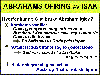 Resultatet ble at Abrahams etterkommere måtte trelle i 400 år i Egypt. Guds gjenoppreisningsarbeid med Abraham i den sentrale rolle ble forlenget gjennom de tre generasjonene Abraham, Isak og Jakob.