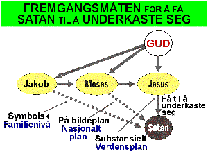 For å få Satan til å underkaste seg viste Jakob symbolsk hvordan man går fram. Moses viste veien på bildeplan, mens Jesus skulle substansielt sørge for at Satan underkastet seg.