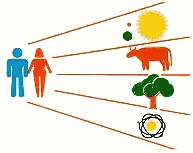 Mennesket, som består av et åndelig jeg og et fysisk jeg, har den følgende posisjon i universet: