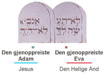De to steintavlene med Guds ord inngravert, og som var symbolske uttrykk for Adam og Eva, symboliserte også Jesus og Den hellige ånd, som én dag skulle komme som inkarnasjoner av Ordet. Det er grunnen til at det står skrevet at Kristus er symbolisert ved en "hvit stein" (Åp 2,17) og ved en "klippe" (1. Kor 10,4).