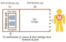 Jesus sammenlignet templet i Jerusalem med sin egen kropp (Joh 2,21). Paulus sa at de troende er Guds "tempel" (1. Kor 3,16). Templet er derfor et billedlig uttrykk for Jesus. Mens de var på vei gjennom ørkenen, var det umulig for israelittene å bygge noe tempel. I stedet bygde de et "bærbart tempel". Dette var tabernaklet. Av den grunn var også tabernaklet, som var et tempel i miniatyr, et symbolsk uttrykk for Jesus. Det var nettopp dette Gud uttrykte da han ga Moses instrukser for å bygge tabernaklet: "La dem så reise en helligdom for meg, og jeg vil bo midt iblant dem" (2. Mos 25,8). På det symbolske plan representerte derfor tabernaklet Messias. Israelittene skulle derfor selvsagt følge, ære og vise omsorg for tabernaklet på sin ferd gjennom ørkenen.