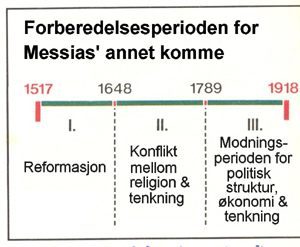 Dette kapitlet dekker perioden fra renessansen fram til våre dager. Det tar først og fremst for seg forberedelsesperioden for Messias' annet komme, dvs de fire hundre årene fra den religiøse reformasjonen til slutten av første verdenskrig. Denne forberedelsesperioden deles i tre delperioder: reformasjonstiden, fra 1517 til 1648; tiden med konflikt mellom religion og filosofi, fra 1648 til 1789; samt modningsperioden for politisk struktur, økonomi og tenkning, fra 1789 til 1918. Vi skal også se på den betydning det 20. århundres verdenskriger hadde for Guds gjenoppreisningsarbeid.