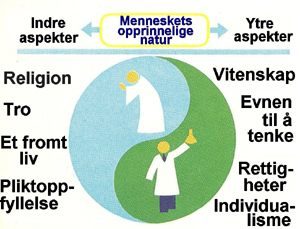 Således søkte mennesket å tilfredsstille sin indre lengsel gjennom tro, ære, pliktoppfyllelse, et fromt liv og et forhold til Gud. Dets ytre lengsel gjorde at mennesket søkte å utvikle sine kunnskaper (gjennom vitenskap), sin tenkeevne og sine rettigheter.