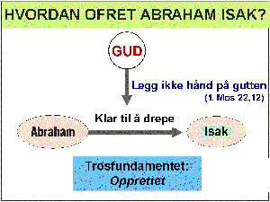 Abraham rakte ut hånden og tok kniven for å ofre Isak. Men Guds engel ropte til Abraham: «Legg ikke hånd på gutten og gjør ham ikke noe! For nå vet jeg at du frykter Gud.»