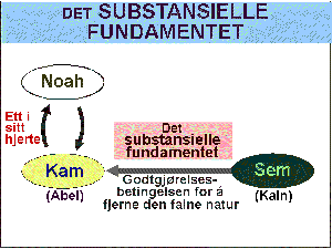 Noahs sønner Sem og Kam hadde samme posisjoner som henholdsvis Kain og Abel. Hvis de hadde lykkes med den substansielle offergaven og opprettet godtgjørelsesbetingelsen for å fjerne den falne natur, ville det substansielle fundamentet ha blitt etablert.
