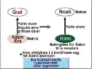 Kams handling da han følte skam over å se sin fars nakne kropp, lignet på Adams og Evas handling da de skjulte seg og dekket sine private deler like etter syndefallet. Kams syndige handling skapte en betingelse for Satan til å kunne invadere.