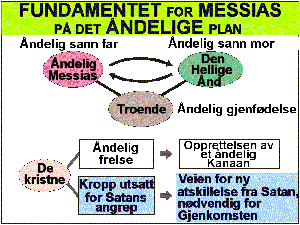 På dette grunnlaget kunne Jesus innta posisjonen som åndelig Messias etter først å ha vært den som hadde oppgaven til døperen Johannes på det åndelige plan. Han kunne da gjenoppreise Den hellige ånd, som sammen med Jesus ble åndelige Sanne foreldre, slik at arbeidet med å gi menneskeheten åndelig gjenfødelse kunne begynne.