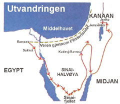 Selv om israelittene hadde tilstrekkelig tro på Moses til å begynne ferden til Kanaan, visste Gud allerede at de ikke hadde nok tillit til sin leder. Som beskrevet i 2. Mos 13,17 fryktet Gud at de ville bli redde hvis de ble vitner til krig, dersom de ble ledet via den direkte ruten gjennom Filisterlandet. Da ville de igjen miste sin tro og kunne lett dra tilbake til Egypt. Således ville ikke Guds gjenoppreisningsplan kunne gjennomføres. Derfor ledet ikke Gud dem denne veien, men lot dem begynne ferden til Kanaan ved å føre dem over Rødehavet og inn i Sinai-ørkenen, selv om dette ville ta lenger tid. Ved hele tiden å kunne se Guds mirakler og oppleve Guds velvilje (gunst), selv om de ikke hadde tilstrekkelig tro, ville de ikke så lett kunne dra tilbake til Egypt. På denne måten begynte israelsfolket det som skulle ha vært en 21-måneders ørkenvandring sentrert om Moses.