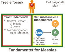 Hvis israelittene i tillegg, gjennom godtgjørelse, hadde gjenoppreist det substansielle fundament som et helt folk, sentrert om den seierrike Moses, ville resultatet ha blitt at de, som et folk, også hadde etablert fundamentet for Messias. På dette fundamentet ville folket dermed etter hvert ha kunnet motta Messias, bli "født på ny" og bli kvitt arvesynden. Hvis de da hadde utviklet sin opprinnelige natur, ville de ha kunnet bli fullkomne mennesker. Så langt kom man imidlertid ikke. Fordi israelsfolket ikke hadde tillit til Moses, ble den vei folket gikk for å opprette Kanaan, sentrert om Moses, til slutt forlenget, slik at det ble nødvendig med tre forsøk.